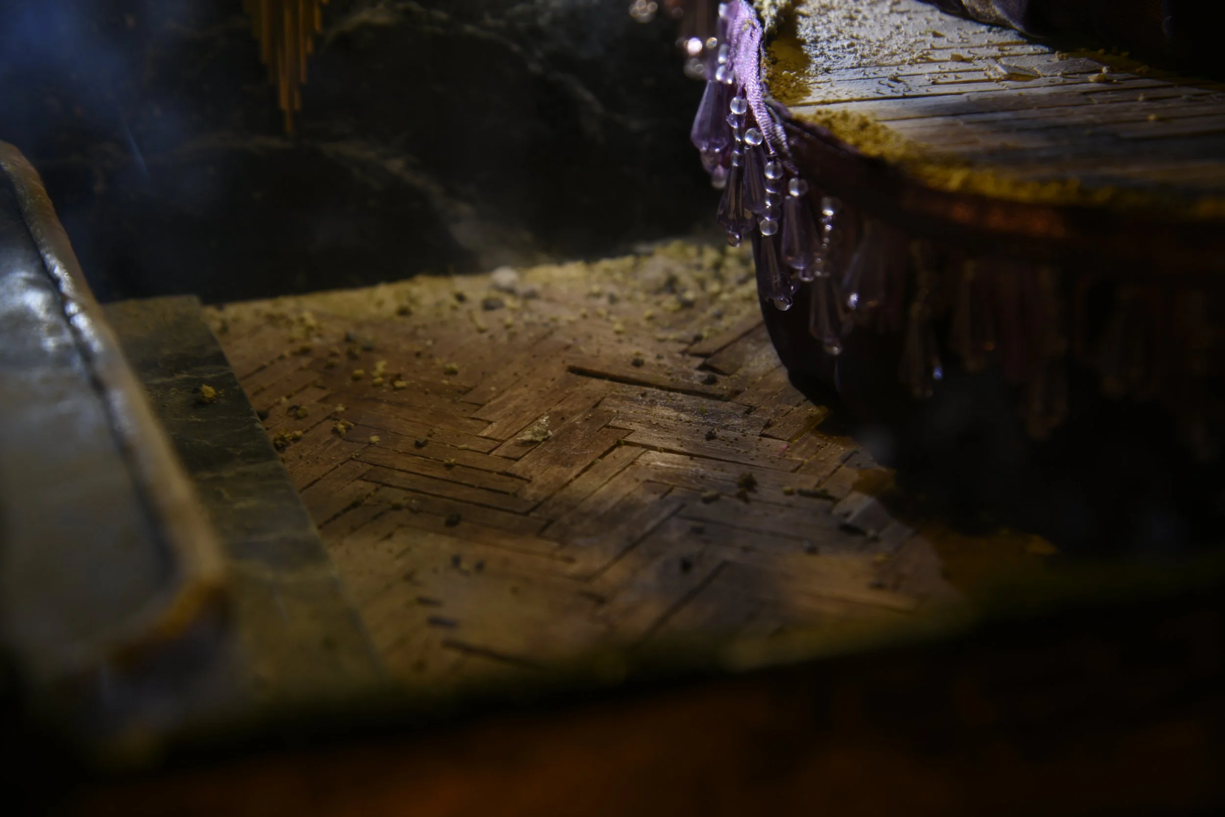 This once-glamorous bar personifies a life caught in suspended motion, where time circles endlessly without consequence. The space exudes a dreamy detachment, where indulgence meets inertia, reflecting a willful ignorance of life’s relentless cycles. In this realm, fictional character La Huevona lingers—a fleeting presence in a room that seems content to forget the passage of time.